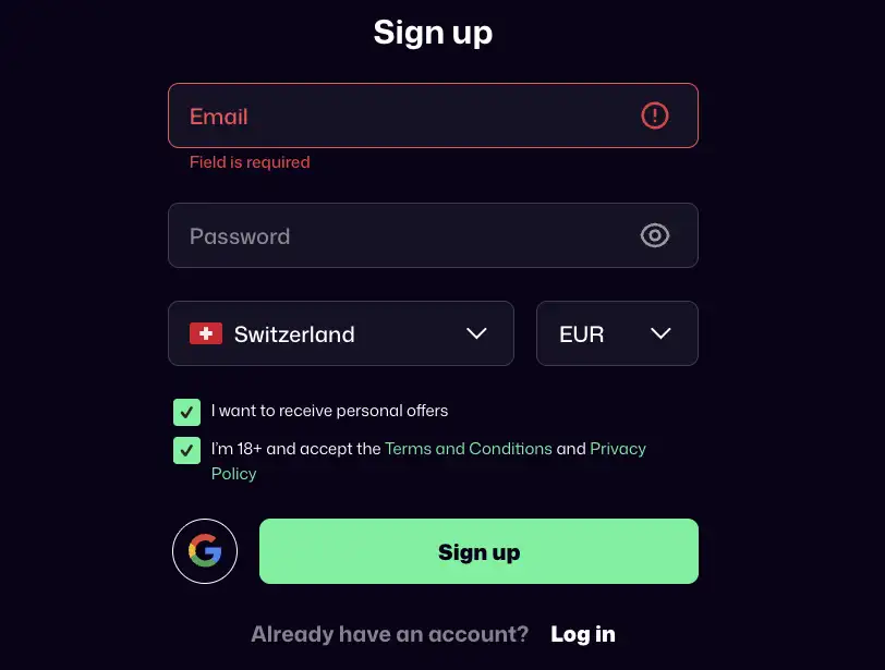 - Po uspešni registraciji se prijavite in po želji položite 20 € ali več za aktivacijo dobrodošličnega bonusa.